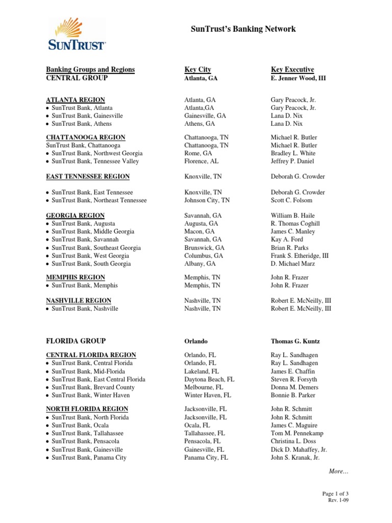 Suntrust bank florida branches are located in most of the important cities and urban areas of this u.s.